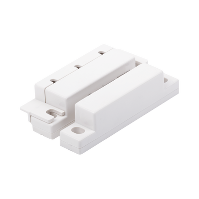 El Sensor magnético para ventanas y puertas consta de un imán y un reedswitch (interruptor magnético). Este sensor funciona como un switch normalmente cerrado (mientras hay campo magnético). Cuando la puerta o ventana se abre, el circuito eléctrico también se abre y es posible detectar la apertura de la misma.