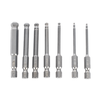 Juego PRECISION PST-C01-004 de 7 Puntas Hexagonales / Allen, Milimétricas con Cabeza Redonda para Destornillador de entrada Hexagonal de 1/4″